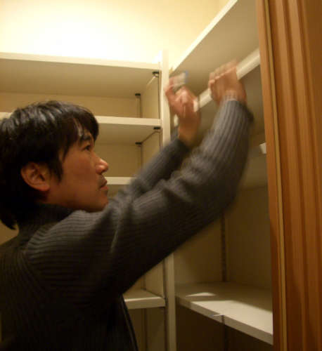 上の写真のように収納内の棚板も触って確認します。可動式の棚であれば軽く動かして確認することも大事です。